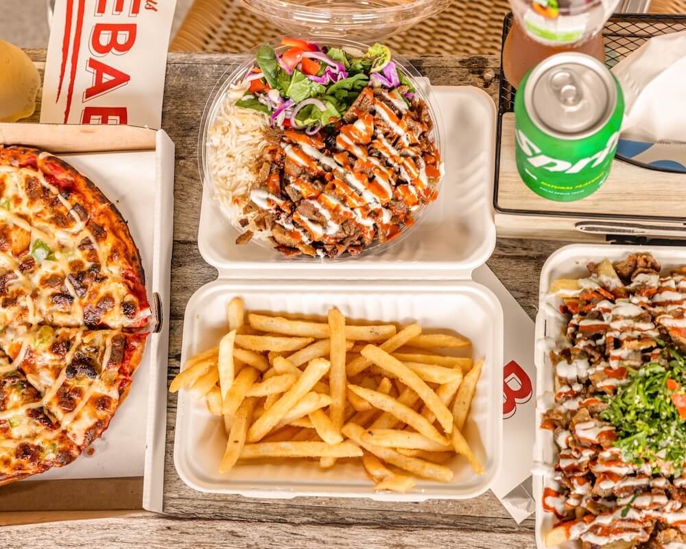 Served with falafel, mix salad, rice, bread and 2 sauces