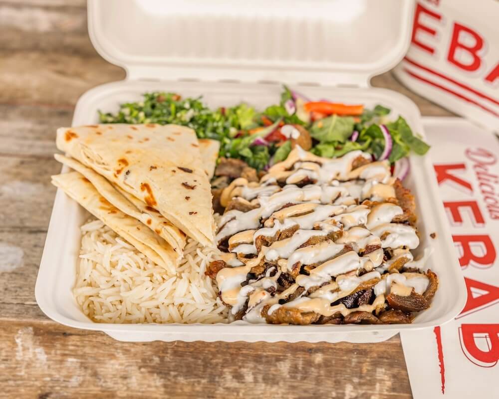 All plates are served with meat, mix salad, rice, bread and 2 sauces